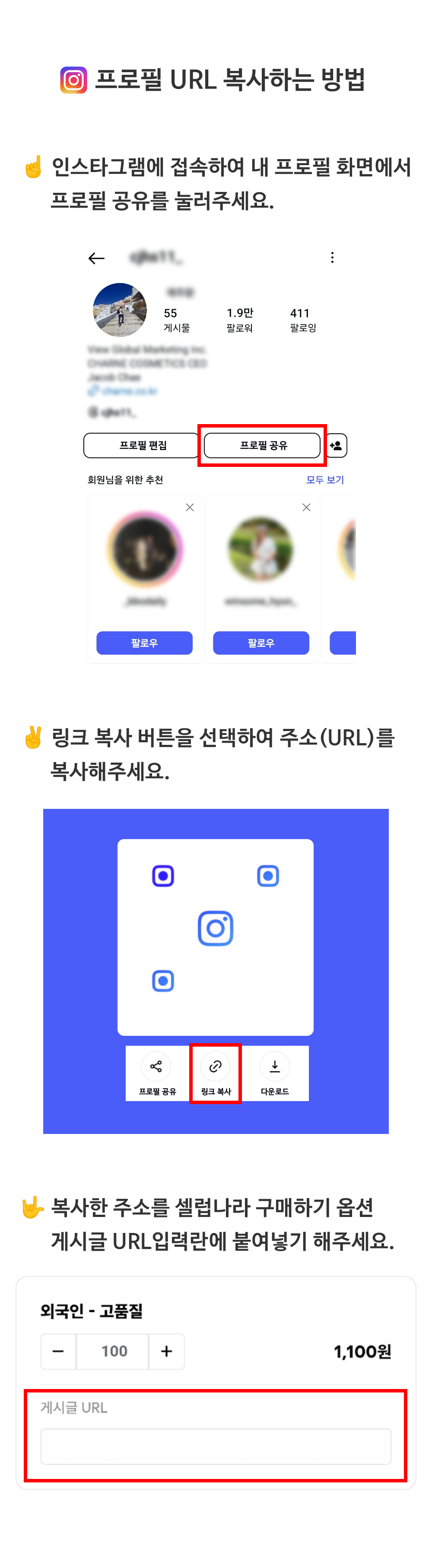- 작업시간은 상품마다 상이하며, 간혹 인스타그램 업데이트로 인해 작업이 지연 될 수 있습니다. 이에 대하여 환불은 불가능합니다.